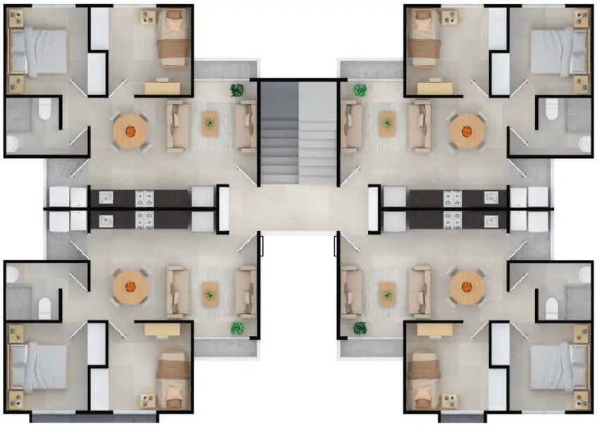 Departamentos con amenidades diseñadas para escapar de la rutina y pasar tiempo de calidad con tus seres queridos dentro de un entorno con acceso controlado y vigilancia 24/7